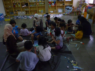 Art day perpustakaan Reading Corner ECCD-RC untuk bulan Juni 2013 dilakukan pada hari Jumat tanggal 21 & 28. Seperti biasa, acara art day dimulai pada pukul 14.30 WIB di bengkel APE/ gallery ECCD-RC. Pada kegiatan pertama, anak-anak didampingi oleh Mbak Eti, Mbak Peppy, Mbak Lina, dan Mbak Ruri. Kemudian pada kegiatan kedua didampingi oleh Mbak Eti dan Mbak Indah