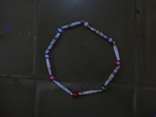 Saat praktek, pertama-tama peserta membuat gulungan dari kertas majalah. Mereka bekerja sama saat proses menggunting, menggulung, dan mengelem. Setelah jumlah dirasa mencukupi mereka mulai mengukur panjang benang elastis sepanjang pergelangan tangan atau leher. Kemudian, mereka pun mulai merangkai gulungan kertas dan manik-manik yang telah disediakan menjadi gelang atau kalung.
