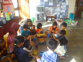 Hari Kamis dan Jum’at tanggal 28 dan 29 November 2013 kemarin, perpustakaan reading corner ECCD RC mengadakan “Art day” lagi lho. Art day kali ini anak anak diajak untuk ikut memperingati hari pohon yang diperingati setiap tanggal 21 November. Kami mengajak anak anak untuk membuat pot tanaman dari botol bekas. Selanjutnya anak anak diajak untuk menanam pohon dalam pot yang mereka hias.