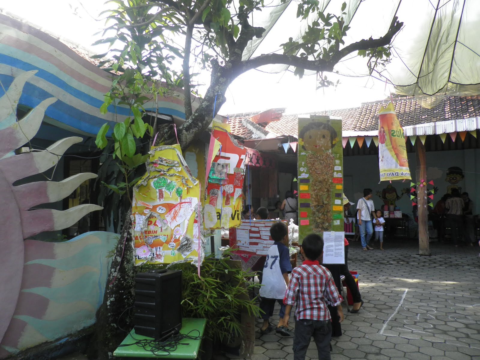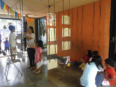 kegiatan berlangsung dari pukul 09.00-11.00. banyak sekali orang tua, maupun masyarakat yang datang di acara ini. seluruh stand laris manis. selain itu, ada lelang karya anak, yang berhasil terjual ke orang tua murid. ada performance anak dari teman teman TK B 2…mereka menyanyi lagu “ibu kita kartini” dengan alat musik mereka 🙂 . teman teman dari TK B 1 juga membuka workshop, membuat karya dari barang bekas bersama mb vika. ada juga anak yang bertugas untuk menyebarkan kertas ke orang dewasa, untuk menuliskan permasalahan seputar anak, yang selanjutnya akan dibahas di parenting corner oleh mbak yani dan mbak reni sebagai moderator (ortu murid). teman dari TK B dan prep juga bertugas untuk jaga pameran,dan mencatat karya yang terjual bersama mb pundhy. ada lagi yang bertugas di sudut baca menemani mb eti (pustakawan ECCD RC). kegiatan ini semakin meriah dengan duo MC mb arti dan mb lidia..yang terus menyemangati semua yang hadir di acara ini.