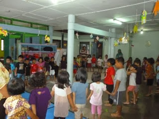 Selesai makan bekal bersama,anak-anak dibagi 2 kelompok,untuk anak-anak TK besar dan TK kecil mengikuti kegiatan diluar Labschool dengan kegiatan mengisi air ke dalam botol yang berlubang,untuk kegiatan ini anak-anak diharapkan bisa berkerjasama untuk mengisi air sebanyak-banyaknya ke dalam botol yang berlubang.Untuk anak-anak Playgroup mengikuti kegiatan yang di dalam Labschool,yaitu estafet bola dengan piring.Kegiatan ini juga bertujuan agar anak-anak bekerjasama mengumpulkan bola sebanyak-banyaknya.Di akhir acara ini anak-anak mendapatkan bendera merah putih.Setelah itu bergantian mengikuti kegiatan yang di luar Labschool,yaitu mengisi air ke dalam botol.Anak-anak sangat bersemangat sekali mengikuti kegiatan ini.Berikut ini beberapa foto-foto kegiatan tersebut.