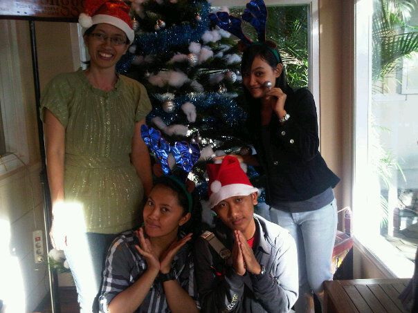 tidak kalah menariknya, kami juga dipinjami kostum (topi santa claus dan bando rusa) untuk foto2 di pohon natal yang menjadi dekorasi mereka.
