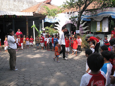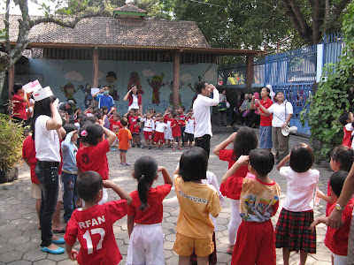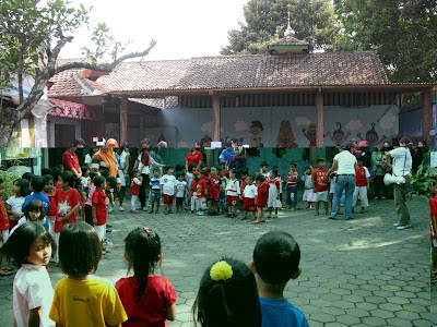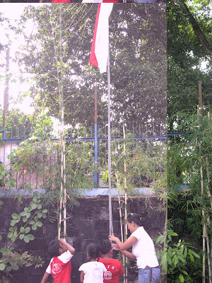 walaupun sudah lewat dari tanggal 17 agustus, kami tetap semangat untuk mengenalkan ke teman kecil… yaitu upacara bersama..:). di dalam kegiatan ini, anak terlibat sebagai paduan suara, pengibar bendera, dan juga peserta pastinya. lucuuu..sekali. ada yang masih baru denger lagu indonesia raya, ada juga yang lari lari..hehehe..tapi kita semua semangat! di upacara kali ini, inspektur upacara (salah satu guru) mengajak teman teman kecil juga dewasa, untuk tetap mencintai Indonesia, salah satunya dengan menjaga lingkungan. anak anak mengusulkan untuk membuang sampah pada tempatnya, membuat mainan dari barang bekas, dan juga menanam pohon…. *wah,,keren ya! mari lihat foto saat upacara.. 🙂